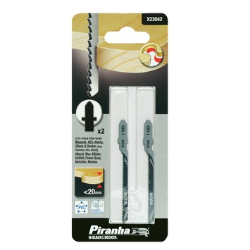 Het Piranha decoupeerzaagblad hout bochten T-schacht x23042-xj is geschikt voor het zagen van hout, spaanplaat en kunststof tot een dikte van 30mm. Met het extra smalle (scroll) decoupeerzaagblad x23042-xj kunt u eenvoudig scherpe bochten zagen. Het zaagblad geeft een fijne afwerking en wordt per 2 stuks verkocht. Dit decoupeerzaagblad heeft een T-aansluiting. Het zaagblad past ook op de nieuwste generatie decoupeerzagen die een universele aansluiting hebben.