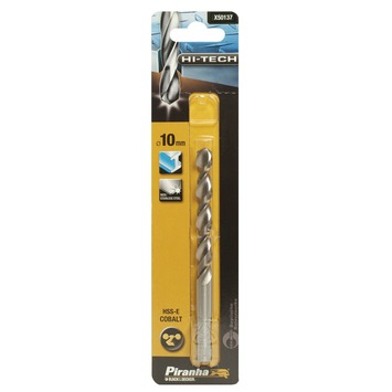 De Piranha HI-TECH kobalt metaalboor x50137-qz 10mm is geschikt voor alle metaaltypes, in het bijzonder roestvrij staal. De X50137-qz is een sterke boor met een lange levensduur, gemaakt van kobaltgelegeerd kwaliteitsstaal. De metaalboor heeft een diameter van 10mm en de punt van 130° is nauwkeurig in vorm geslepen voor een perfecte afwerking.