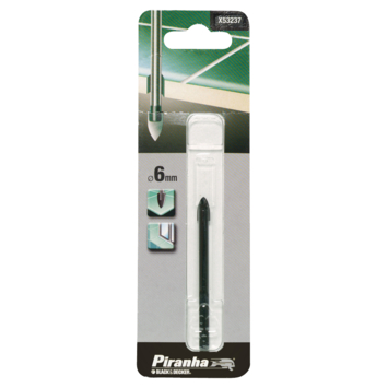 De Piranha HI-TECH tegel- en glasboor x53237-qz 6mm heeft een speciaal ontworpen punt om zeer nauwkeurig te boren in keramische tegels, geglazuurde tegels en glas. De Piranha HI-TECH tegel- en glasboor is gemaakt van kwaliteitsstaal en wolfraam carbide en heeft een diameter van 6mm.