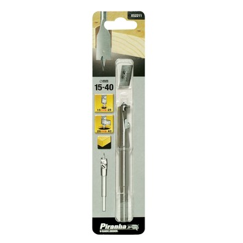 De Piranha verstelbare houtboor x52211-qz 15-40mm is geschikt voor het boren van grote gaten in zachthout, hardhout en spaanplaat. U kunt de boor in diameter verstellen van 15 tot en met 40mm. In feite heeft u slechts één boor nodig om diverse maten gaten te kunnen boren.