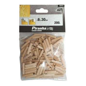 De Piranha houten deuvels x66431 zijn 30mm lang en hebben een diameter van 6mm. U koopt ze in een verpakking met 200 stuks tegelijk.