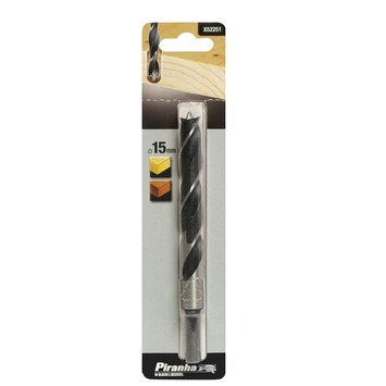 De Piranha houtspiraalboor x52251-qz 15mm is geschikt voor het maken van snelle en schone gaten in hout, laminaat en spaanplaat. De boor is heet gerold van chroom vanadium en heeft een schacht met een Bradpoint centreerpunt. De Piranha houtspiraalboor x52251 heeft een diameter van 15mm.