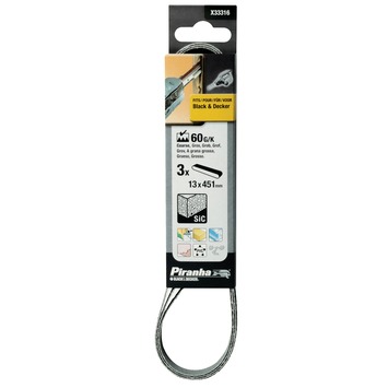 De Piranha schuurband k60 grof x33316-xj 13x451mm is onder andere geschikt voor de Black&Decker Powerfile BD280/290/282E/292E de KA290 of 292E. De schuurband heeft een korrel 60 waardoor hij een grove afwerking geeft en is speciaal bedoeld voor het bewerken van keramiek. Deze superkwaliteit schuurband meet 13x451mm en wordt per 3stuks verkocht.