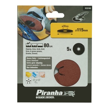 De Piranha schuurschijf haakse slijper k80 x32165-xj 115mm kunt u gebruiken in combinatie met de steunschijf nylon 115mm (x32105-xj). Hij is geschikt voor bijna alle gangbare haakse slijpers. De schuurschijf heeft een diameter van 115mm en een korrel 80 voor een grove afwerking. U koopt de schuurschijf in een verpakking van 5stuks.