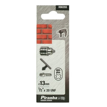 De Piranha SDS-PLUS boorkop x66355-qz is een combinatie van boorhouder, adapter en boorkop die op nagenoeg alle merken boormachines past. Zo kunt u boorkoppen, sleutels en snelspanboorkoppen gebruiken. Deze combinatie bestaat uit een boorhouder met een afmeting van 1/2" x 20mm, L/R en een diameter van 13mm, een SDS+ adapter en een boorkopsleutel.
