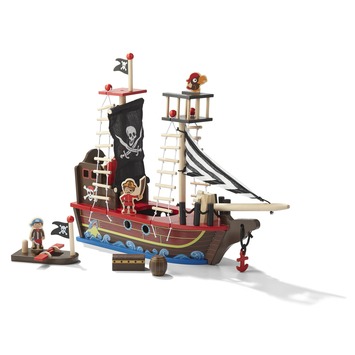 Inclusief accessoires zoals een roeiboot, piraten, schatkist, waterton en papagaai.