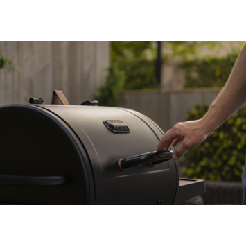 Via de zijtoegang tot de houtskoollade vul je houtskool bij tijdens het grillen. Zo houd je de temperatuur stabiel zonder het hele rooster te verplaatsen. Dit helpt je om het grillproces beter onder controle te houden tijdens langere bereidingen.