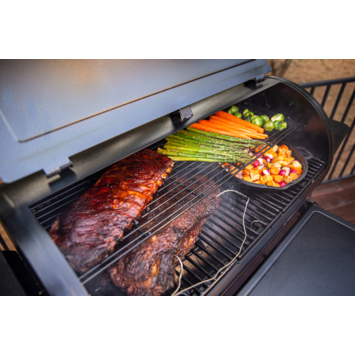 De Pit Boss 1150 Pellet Grill uit de Navigator Series is de ultieme keuze voor veelzijdig barbecueën. Deze pellet BBQ biedt maar liefst 8 kookmethodes: roken, grillen, bakken, braden, smoren, char-grillen, dichtschroeien en bakken. Of je nu langzaam wilt roken of snel wilt dichtschroeien, deze grill heeft het allemaal. De porselein gecoate gietijzeren roosters zorgen voor een gelijkmatige warmteverdeling, wat resulteert in perfect bereide gerechten met rijke smaken. Dankzij de Slide-Plate vuurplaat schakel je moeiteloos van directe naar indirecte hitte. Met een maximale temperatuur van 535°C kun je je vlees snel dichtschroeien. Deze BBQ werkt op pellets en wordt geleverd met een vleessonde om de temperatuur precies te volgen, zodat je altijd de juiste garing bereikt.