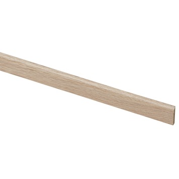 De plakplint naturel eiken 240 cm kun je gebruiken voor een snelle en eenvoudige afwerking bij jouw laminaatvloer. De plakplinten zijn vervaardigd van hoogwaardige MDF en voorzien van een bijpassende decorfolie. Hierdoor is er altijd een plint die past bij het decor van jouw laminaatvloer. Aan de onderzijde van de plakplint is een dubbelzijdige tape voorzien, waardoor de installatie zeer snel kan worden uitgevoerd. Door de beperkte hoogte kan de plakplint perfect onder de deur worden geplaatst. Deze plint is daarom een perfecte afwerking voor je laminaatvloer.