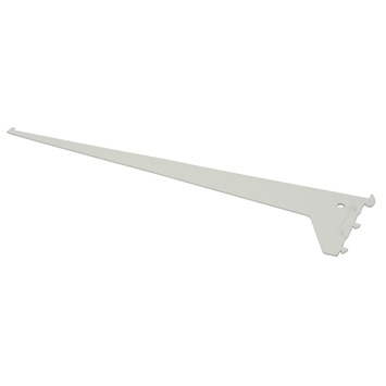 Enkele Drager: na het monteren van de Enkele Rails kan met behulp van deze drager op iedere willekeurige hoogte een plank wordt gerealiseerd. Deze Enkele Drager 50cm is geschikt voor planken met een diepte van 50cm. Uitgevoerd in de kleur Wit.