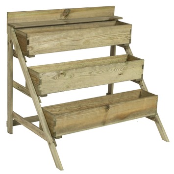 Met deze bloementrap zet je je bloemen en planten op een speelse manier in je tuin of op je balkon. De getrapte plantenbakken zorgen voor een dynamisch effect, waardoor op een relatief klein oppervlak veel groen kan worden geplaatst. Het hout van de Plantenbak Trapvorm Hout is geïmpregneerd en daardoor voorzien van een goede basisbescherming, die naar eigen wens nog behandeld kan worden met een verf of olie.