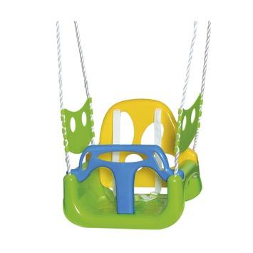 3-in-1 schommel, die gemakkelijk aangepast kan worden aan de leeftijd van het kind. Belastbaar tot 60 kg. Met 3-puntsgordel met kantelbeveiliging. Van weerbestendige materialen en eenvoudig in elkaar te zetten! In hoogte verstelbaar. Inclusief ophanging. Touwlengte: 150 cm. PP-kunststof 10 mm - PE koorden, tot 150 cm in hoogte verstelbaar. Geschikt voor kinderen van 1 tot 12 jaar.