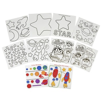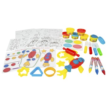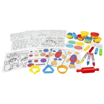 Met deze kleiset van Play-Doh ben je net een echte astronaut! Gebruik de verschillende vormpjes om leuke raketten of sterren te maken. Bij deze set zitten ook kleurplaten die je kunt inkleuren met de bijgeleverde krijtjes. Inhoud: 1 bakje met klei, 2 uitsteekbare mallen, 3 krijtjes, 1 mesje en 15 kleurplaten. Geschikt voor kinderen vanaf 2 jaar.