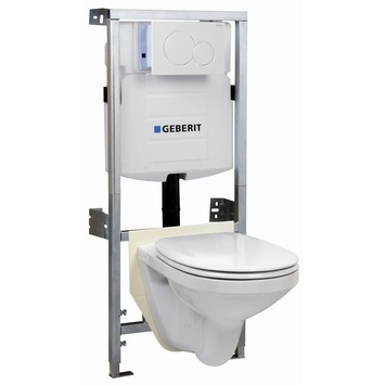 Sphinx 285 diepspoel wandcloset met zitting en deksel, isolatiemat, witte dualflush bedieningspaneel Sigma 01 en Burda inbouwreservoir met deelbaar frame van Geberit UP320.