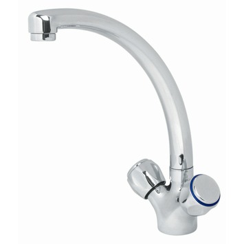 De keukenkraan Start tweeknops chroom is een kraan van het merk Plieger. De Start keukenkraan heeft een gegoten uitloop en een tijdloos design. Met de tweeknops bediening meng je zelf de hoeveelheid warm en koud water tot de gewenste temperatuur is bereikt. De kraan is eenvoudig te monteren met de bijgeleverde aansluitslangen en montagehandleiding. De keukenkraan Start heeft een draaibare hoge uitloop en past in iedere keuken of bijkeuken.