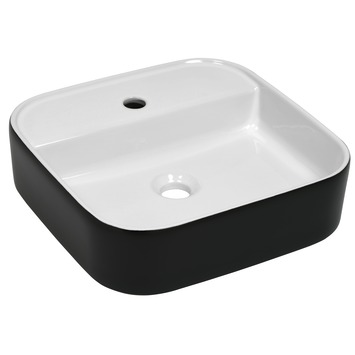 De Plieger Wastafel Fresno Opbouw Mat Zwart met Kraangat 42x42x11.5 cm is een veelgevraagde opbouwwastafel. Modern, mooi vormgegeven met een voorgemonteerd kraangat. Deze Plieger Fresno opbouw wastafel is leverbaar in drie populaire kleuren wit glans, wit mat en zwart mat. De afmeting is 42x42x11,55 cm.
