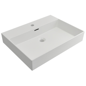 De Plieger Wastafel Kansas Mat Wit 1 Kraangat 60x45x12 cm is robuust maar door de dunne randen toch heel verfijnd. Kansas is in vele maten te verkrijgen van 60x45cm tot en met 120x45cm. Vanaf 100x45cm is deze wastafel met twee kraangaten te verkrijgen. Ideaal voor in een kleine badkamer als je tegelijkertijd je tanden wilt poetsen! De afmeting van deze wastafel is 60x45x12cm en is verkrijgbaar in de kleuren wit, mat wit en mat zwart.