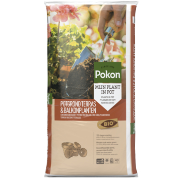 Op zoek naar de ideale potgrond voor je terras- en balkonplanten? De Pokon Bio potgrond terras & balkon planten 40 L is de oplossing! Speciaal ontwikkeld voor eenjarige en zomerbloeiers, geeft deze potgrond je planten precies wat ze nodig hebben om te floreren. De grond houdt water effectief vast en geeft het geleidelijk af, terwijl de toevoeging van klei en rijstkaf zorgt voor een bodem vol voedingsstoffen. Hierdoor blijven je planten sterk en bestand tegen aanvallen van ziektes en plagen. Daarnaast is het RHP-gecertificeerd en gebruik je daarmee een veilige keuze voor je planten, jezelf en je huisdieren. Met verantwoord geproduceerde turf (RPP) sta je ook nog eens achter een groene keuze. Begin met een basislaag van Hydrokorrels, vul dan aan met deze potgrond. Geef je plant een water dompelbad en plant hem in de pot, waarna je hem met potgrond opvult tot 2 cm van de rand. Zorg vervolgens voor voldoende water en na drie maanden is het tijd voor een nieuwe voedingsronde.