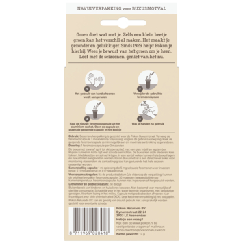 Met een buxusmotval kan je de buxusmot vangen en daarmee monitoren of je buxus getroffen is door een plaag. Het vermindert de schade aan de plant omdat mannelijke motten worden aangetrokken door de val met feromoon en zich daardoor niet meer kunnen voortplanten. Het wordt geadviseerd de Buxusmotval aan het begin van de lente in de buurt van de buxusstruik te plaatsen. Dit product is een navulcapsule voor de buxusmotval en is goed voor 3 maanden.
