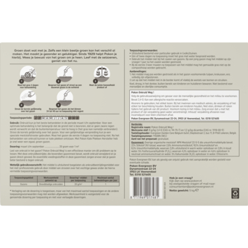 Heb je last van onkruid in je gazon? Met Pokon Onkruid Weg! pak je dit probleem effectief aan. Deze onkruidbestrijder bestrijdt onder andere boterbloem, madeliefje, klaver en paardenbloem, terwijl de gazonmest zorgt voor de nodige voeding van je gras. Dit maakt je gazon sterker en minder gevoelig voor onkruid. Het beste resultaat krijg je als je het product gebruikt van maart tot september. Zorg ervoor dat de grond niet bevroren is en er geen zware regen voorspeld wordt. Maai je gras vier dagen voor de toepassing en strooi de korrels gelijkmatig over een dauwnat gazon. Besproei het gras als het binnen 24 tot 48 uur na toepassing niet regent voor een optimaal effect.