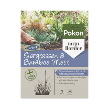 Wil je je siergrassen en bamboe weelderig en gezond houden? Kies dan voor Pokon siergrassen & bamboe mest 1 kg. Dit product is speciaal samengesteld voor nagenoeg alle bamboe- en siergrassoorten en biedt een krachtige 3-in-1 werking: het combineert voeding, bodemverbetering en plantversterking in één korrel. Verrijkt met natuurlijke mineralen die in de natuur voorkomen, zoals zeoliet en algen, verbetert het zowel de plantgroei als de bodemkwaliteit. Magnesium en ijzer zijn toegevoegd om de grassen en stengels een diepe, rijke kleur te geven, terwijl ze ook de plant versterken tegen ziektes, plagen en vorst. De meststof biedt tot 120 dagen voeding en is het meest effectief van maart tot augustus. Geef je planten een boost door ze in het vroege voorjaar en de zomer te voeden. Meet de mest af met het meegeleverde maatschepje, verdeel de korrels rond de planten, werk ze in de bovenste laag van de grond en geef water om de korrels te activeren. gebruik 40-50 gram voor vollegrond planten en 20-25 gram voor jonge of potplanten.