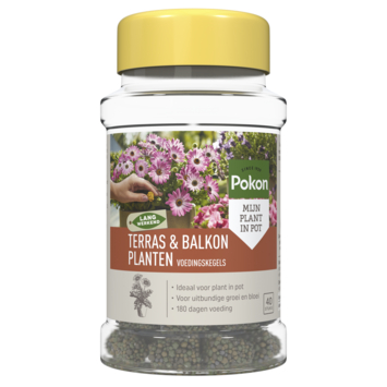 Wil je graag dat je terras- en balkonplanten er het hele seizoen op hun best uitzien, zonder dat je daar veel tijd aan kwijt bent? Dan zijn Pokon terras & balkon planten voedingskegels 40 stuks precies wat je zoekt! Deze gebruiksvriendelijke voedingskegels bieden tot wel 180 dagen continue voeding, afgestemd op de omstandigheden van vocht en temperatuur. Alles wat je hoeft te doen, is een klein kuiltje van ongeveer 5 cm diep naast je plant maken, de kegel erin plaatsen, afdekken met potgrond en water geven. Zo eenvoudig is het om je planten blij en gezond te houden! Voor een pot met een diameter van 15 cm gebruik je 1 kegel, voor 20 cm zijn het er 2, voor 25 cm zijn het er 4 en bij grotere potten (>35 cm) gebruik je er 8. Bovendien worden ze geleverd in een handige verpakking waar je lang mee vooruit kunt.