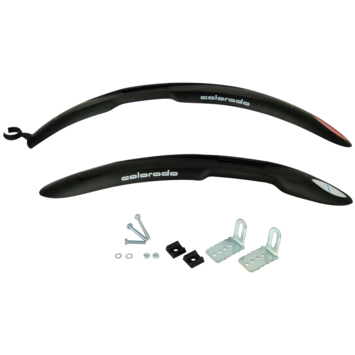 De Polisport spatborden Colorado zijn geschikt voor fietsen met 26inch banden. Ze passen op fietsen met een v-brake en/of vering. De spatborden worden geleverd met montagekit zodat u ze gemakkelijk zelf kunt bevestigen. Ze zijn gemaakt van lichtgewicht materiaal, polypropyleen. En dankzij de reflecterende stickers dragen ze bij aan uw veiligheid op de fiets.