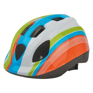 De Polisport Helm Rainbow XXS is een stoere fietshelm voor de allerkleinste fietsgebruiker. De helm beschermt uw kind tegen eventueel hoofdletsel. Aan de achterzijde van de helm bevindt zich een handige knop waarmee u de helm heel eenvoudig kunt verstellen. De fietshelm is geschikt voor kinderen met een hoofdomtrek van 48 tot 52cm. De helm heeft 6 ventilatiesleuven en is voorzien van een verstelbare 3-puntssluiting. gemakkelijk en veilig klik- en sluitsysteem. De Polisport Rainbow XXS is met zijn blauw-rood-gele kleur een opvallende verschijning.