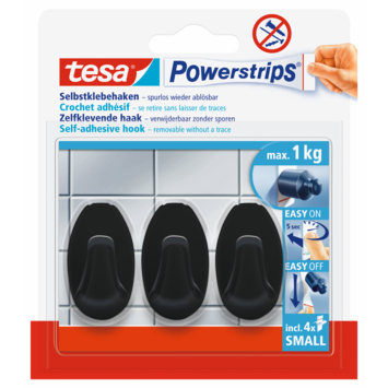 De tesa® Powerstrips zelfklevende haken Small zijn perfect voor het gebruik in de badkamer en keuken. Deze haken hebben een verwijderbare bevestiging, waardoor je veilig items tot een maximumgewicht van 1 kg kunt ophangen. De haken hebben een ovaal ontwerp en zijn verkrijgbaar in verschillende kleuren, waaronder wit, chroom, RVS en matzwart. Het is een handige en stijlvolle oplossing om spullen georganiseerd en binnen handbereik te houden.