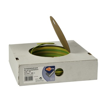 Profile installatiedraad VD 2,5 mm² geel/groen is speciaal voor het aansluiten van de elektrische installatie in huis. Deze installatiedraad VD 2,5 mm² in geel/groen is de aardingsdraad. Met een aderdikte van 2,5 mm² is de draad geschikt voor het aansluiten van maximaal 4600W / 20A. Lengte: doos met rol van 100 meter. Kema Keur.