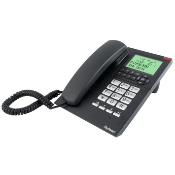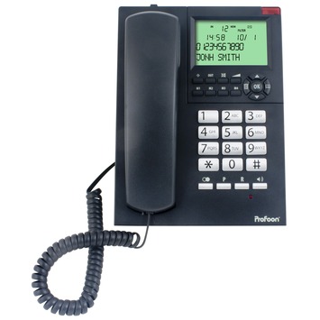 De Bureautelefoon met Display is een handige, makkelijk te gebruiken bureautelefoon. Dankzij het grote lcd-display dat goed leesbaar is, ziet u snel naam en nummerweergave van degene die belt. Ook gesprekstijd en tijd en datum worden weergegeven. Daarnaast ziet u op de display of u voicemailberichten heeft ontvangen. In het telefoonboek van de Bureautelefoon slaat u tot 100 telefoonnummers op. Bovendien is het mogelijk om 4 toetsen te bepalen voor voorkeursnummers waarmee u met één druk op de knop een vast contactpersoon belt. Handsfree bellen behoort ook tot de mogelijkheden, evenals doorverbinden, ruggespraak of een pauzemoment. Voor de Bureautelefoon met Display heeft u geen adapter of extra batterijen nodig. De telefoon krijgt voeding via de PSTN-lijn en is daardoor energiezuinig.
