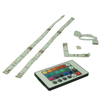 Met twee LED-strips van 40 cm lengte kunt u de sfeer in huis creëren die u wilt door de in kleur afstelbare LED-verlichting. U kunt deze strips installeren in de slaapkamer, woonkamer of zelfs badkamer want de strips zijn spatwaterdicht. Met de draadloze afstandsbediening kunt u de LED-verlichting instellen in kleur en in helderheid. Met de meegeleverde snoer van anderhalf meter lengte sluit u de strips aan op een stopcontact.