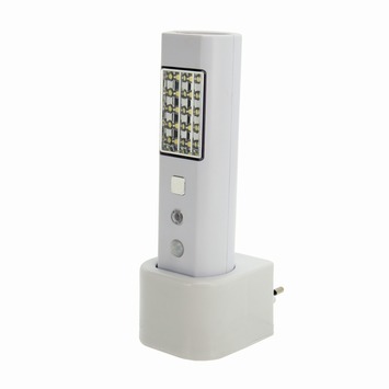 De Prolight - Noodlamp is zeer handig bij stroomuitval. Tevens is het een zeer krachtige zaklamp, die dank zij de oplading via het net, steeds over zijn maximum capaciteit beschikt. Geen vervelend gedoe met platte batterijen