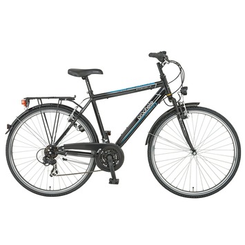 De Prophete Entdecker 1.3 trekkingfiets voor heren is de ideale fiets voor het afleggen van langere afstanden. Dankzij de 21 Shimano versnellingen past u eenvoudig uw snelheid aan bij bijvoorbeeld tegenwind of het beklimmen van een steile helling. De fiets is uitgerust met V-brakes, een verende vork, handige LED verlichting en een Prophete trekking stuur en zadel. Model: 28".