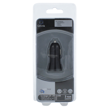 Q-Link Autolader 12V met 2 USB-A zwart