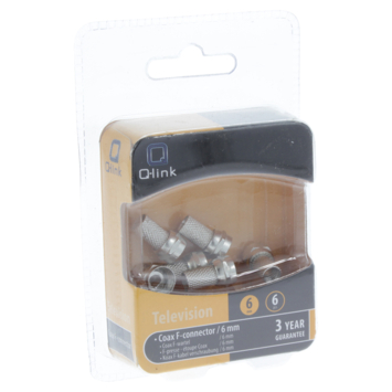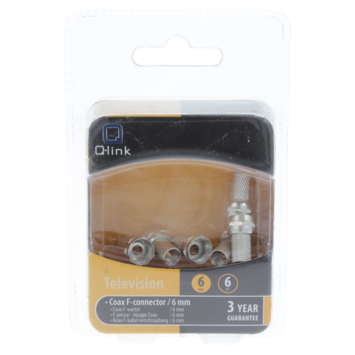 Met de Q-link F-connector verbind je moeiteloos je coaxkabels met schotels, versterkers of splitters. Dankzij de directe aansluiting blijft het signaal sterk, met minimale verliezen. De connector, geschikt voor 6 mm coaxkabels, biedt bescherming tegen stoorsignalen tot 75 dB. Je ontvangt een set van 6 connectors, ideaal voor al je aansluitbehoeften.