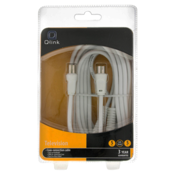 Het Q-link aansluitsnoer zorgt voor helder beeld en storingsvrije geluiden. Dit 5 meter lange snoer beschermt tegen storingen tot 75 dB en bevat een 100Hz-filter, waardoor het geschikt is voor 100Hz-tv's. Het verbindt eenvoudig je coaxcontactdoos met je tv, mediabox, tft of lcd. Ideaal voor iedereen die van een scherp en rustig beeld wil genieten.