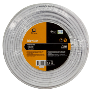 Met de Q-link coaxkabel leg je een antenne-installatie aan en sluit je hierop de radio-/tv- of mediabox hier eenvoudig op aan. De coaxkabel is viervoudig afgeschermd. Deze extra bescherming biedt een dikkere kern en daarmee een optimale geleiding van het signaal. De coaxkabel beperkt verlies van signalen dan ook aanzienlijk. De coaxkabel heeft een totale lengte van 50 meter en is voorzien van KabelKeur. Niet voor niets beveelt Ziggo deze kabel aan. Je maakt de kabel bovendien eenvoudig op lengte. Wanneer je het signaalverlies nog meer wilt beperken, monteer je de coaxkabel van 50 meter met afgeschermde pluggen.