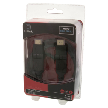 Met de Q-link HDMI-kabel van 2 meter sluit je eenvoudig een dvd-speler, versterker of computer aan op je plasma- of lcd-scherm. De kabel is 19-polig en zorgt voor optimale audio- en videokwaliteit dankzij de gold plated-stekkers. Uniek aan deze kabel zijn de draaibare HDMI-stekkers die 180° kunnen draaien, wat het perfect maakt voor een tv die aan de muur hangt.