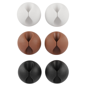 Met de Q-Link kabelbinders blijft je werkplek of huis netjes en geordend. De ronde kabelclips zijn gemaakt van stevig TPR-materiaal en voorkomen dat kabels in de knel raken. Dankzij de plakachterzijde kun je ze snel en eenvoudig op elk glad oppervlak bevestigen. De set bevat zes clips in drie kleuren: zwart, bruin en wit, wat ze geschikt maakt voor iedere omgeving.