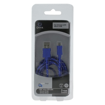 Q-Link Laadsnoer Textiel Micro-USB Blauw 1,5 Meter