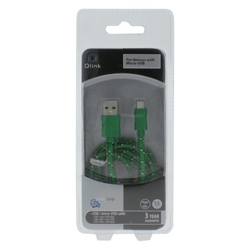 Q-Link Laadsnoer Textiel Micro-USB Groen 1,5 Meter