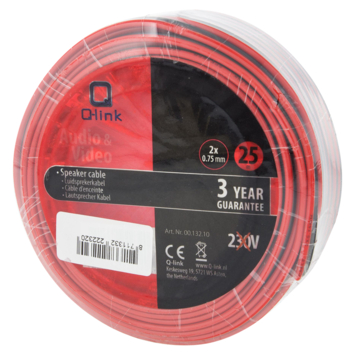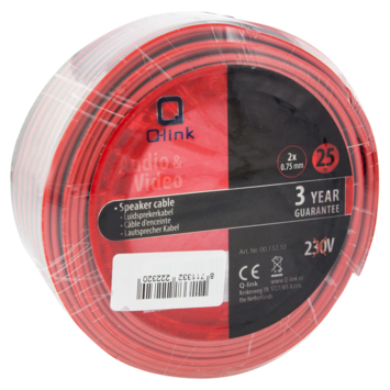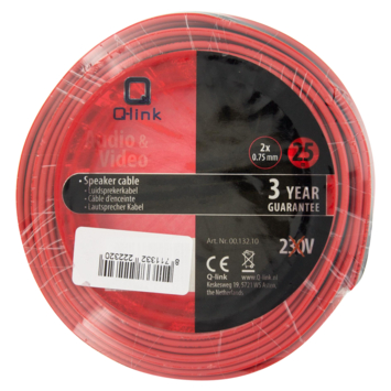 Het Q-link speakersnoer is een handige keuze voor het aansluiten van je boxen op je home cinema-set. Met een lengte van 25 meter en geschikt voor boxen tot 200 watt, kun je eenvoudig speakers plaatsen op een afstand tot 10 meter. De rood-zwarte kabel heeft geleiders van 0,75 mm², die zorgen voor een optimale signaaloverdracht. Zo geniet je altijd van heldere en onvervormde geluidskwaliteit.