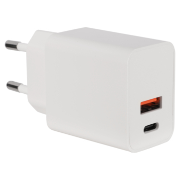 De Q-Link duo thuislader is de perfecte oplossing voor het snel en efficiënt opladen van meerdere apparaten. Met een USB-A-poort met quick charge (18W) en een USB-C-poort met power delivery (20W) combineert deze compacte oplader krachtige prestaties in één apparaat. Geschikt voor smartphones, tablets en andere USB-apparaten, ideaal voor thuis, op kantoor of onderweg.
