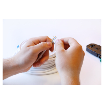 Opgerold is handig,mar in gebruik snel in de knoop. Eindresultaat is prima. Snelleverbinding.
