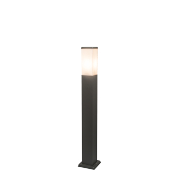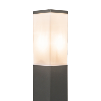 De QAZQA staande buitenlamp Malios 1-lichts 60W E27 donkergrijs staal 80 cm is een moderne tuinlamp die sfeervolle verlichting biedt voor paden, terrassen of in de tuin. Het armatuur is gemaakt van staal en afgewerkt in donkergrijs, gecombineerd met wit kunststof dat het licht gelijkmatig verspreidt en een aangename sfeer creëert. De lamp heeft een hoogte van 80 centimeter en een voet van 12,5 bij 12,5 centimeter, waardoor hij stevig staat.