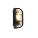 Dankzij de IP44-classificatie is de lamp beschermd tegen spatwater en kleine voorwerpen, waardoor hij geschikt is voor vochtige ruimtes zoals de badkamer of onder een afdak buiten. De lamp werkt op 230 volt en gebruikt elektriciteit. Het ovale zwarte aluminium ontwerp geeft een stoere industriële uitstraling en sluit goed aan bij vintage en nautische stijlen.