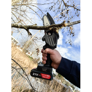 De tijd van met de hand snoeien is voorbij met de QLT mini kettingzaag, zaag zo moeiteloos dikke takken of stammen door. Het lichte gewicht en rubberen handvat zorgt voor een eenvoudige bediening. De meegeleverde lithium accu van 3000 mAh zorgt ervoor dat takken tot wel 16 cm dik kunnen worden doorgezaagd. Voor de veiligheid bevat de kettingzaag een veiligheids lock en handbescherming. Kortom zagen doe je veilig!