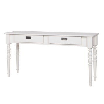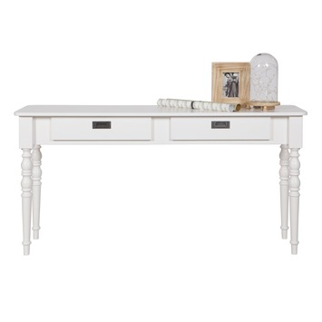 Deze helderwitte sidetable van massief grenenhout is voorzien van twee handige lades, zodat je er ook wat spullen in op kunt bergen. Door de bolpoten onder de sidetabel krijgt deze Qwint sidetable grenen wit 150x40x77cm een geheel eigen karakter. Dit sidetable wordt geleverd als eenvoudig bouwpakket met een duidelijke montage-instructie, zodat je hem makkelijk zelf in elkaar kunt zetten. Kortom: een perfecte sidetabel voor in ieder interieur.