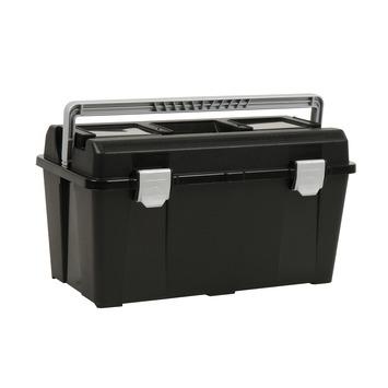 De gereedschapskoffer heeft 2 inzetbakken voor klein gereedschap of onderdelen. Ook zit er een grote vakkendoos in voor alle kleine onderdelen, zoals spijkers en schroeven. Daarnaast heeft de gereedschapsbak ook een handige handreep en 2 stevige sluitingen. De deksel blijft hierdoor ook beter op zijn plek zitten. De koffer is gemaakt van kunststof en hierdoor ook zeer licht. Je kan de gereedschapskoffer dus eenvoudig meenemen naar je werkzaamheden. Kortom, de Raaco Gereedschapskist DIY- T33 in zwart/grijs is zeer handig om al je gereedschap in mee te nemen.